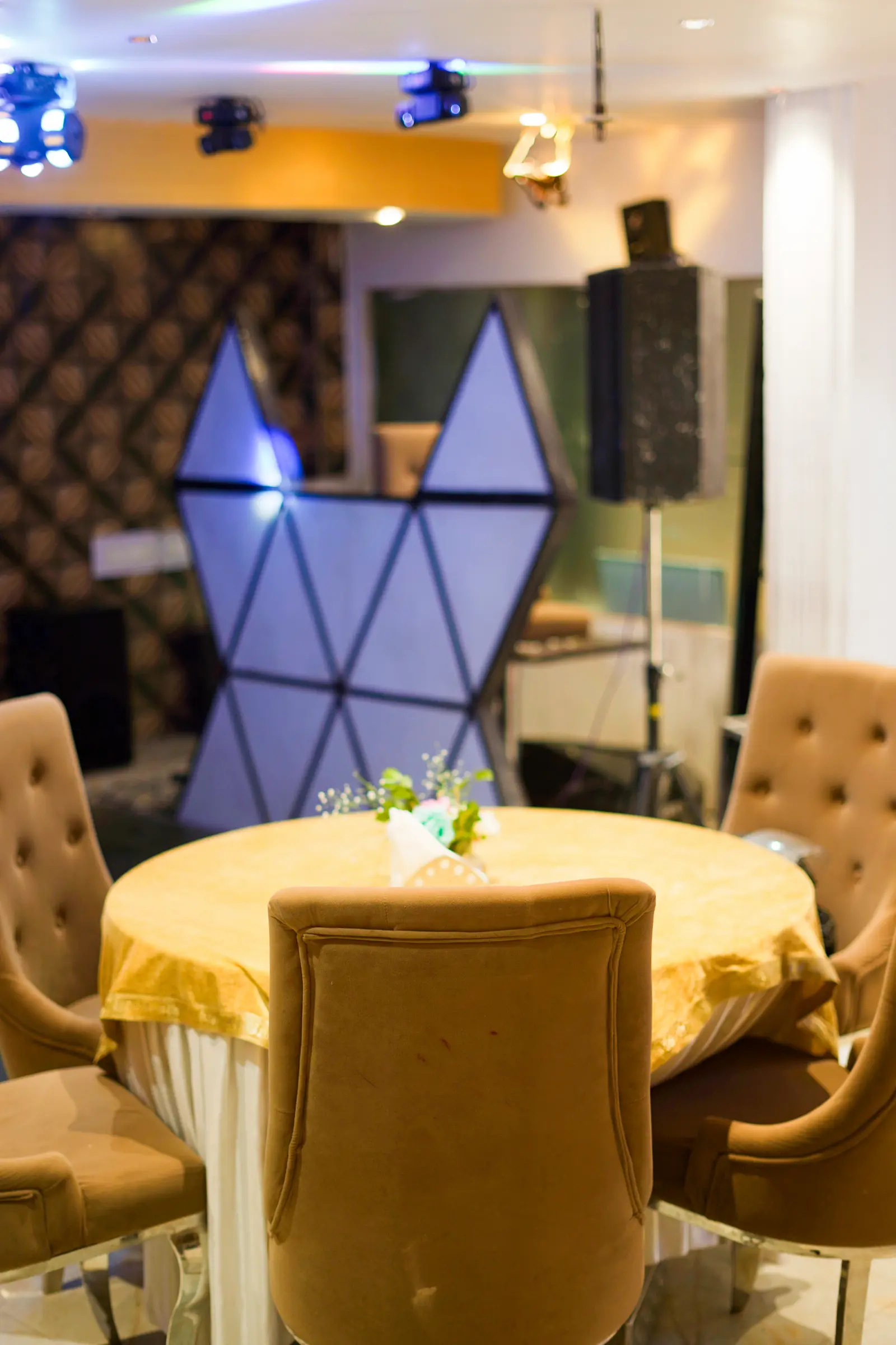 Event lighting and décor at The JK Hotel banquet hall, C R Park